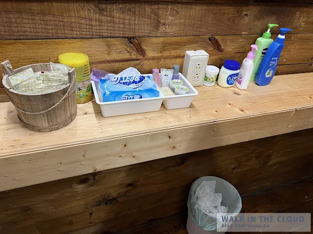 營區的廁所跟淋浴區為「脱鞋」方可進入,所以裡面整體上很乾淨,不會有泥巴或樹葉等。在木屋裡也提供沐浴乳、乳液、吹風機等,應有盡有。